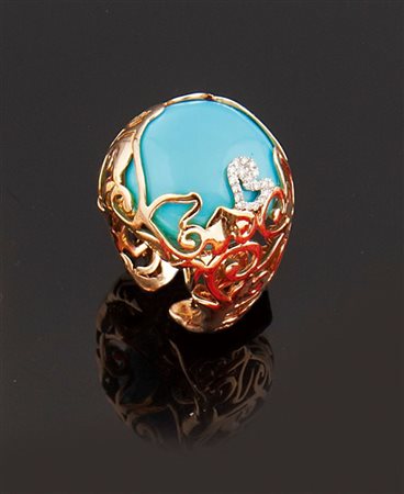 turchese; piccoli diamanti taglio brillante.
