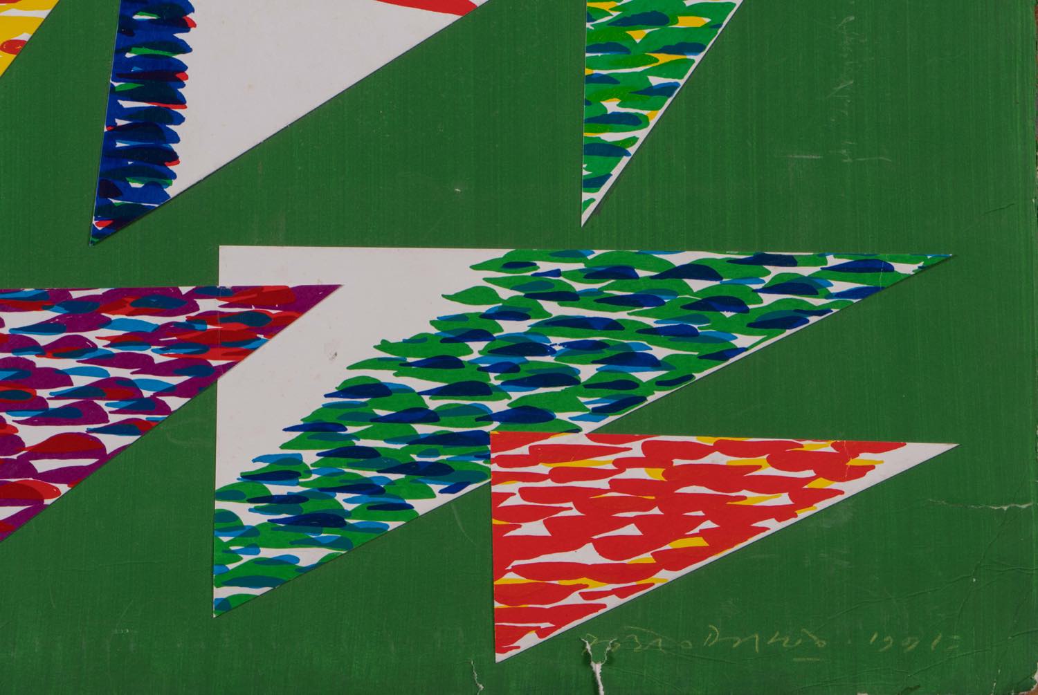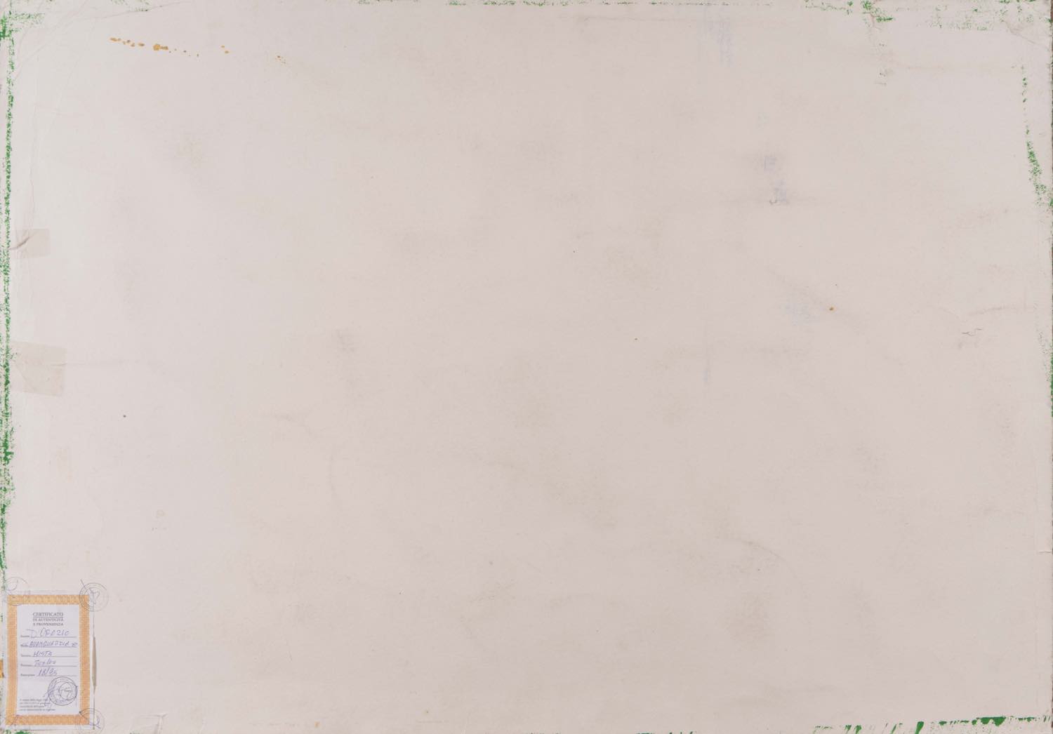 Tecnica mista su cartoncino, firmata e datata in basso a destra “Piero Dorazio 1991”, numero di tiratura ed esemplare in basso a sinistra “18/25 p.a.”, reca al retro certificato di autenticità e provenienza con titolo, timbri e firme Collezione “Il Tempio dell’Arte – Roma”, H cm 75x104 (difetti)