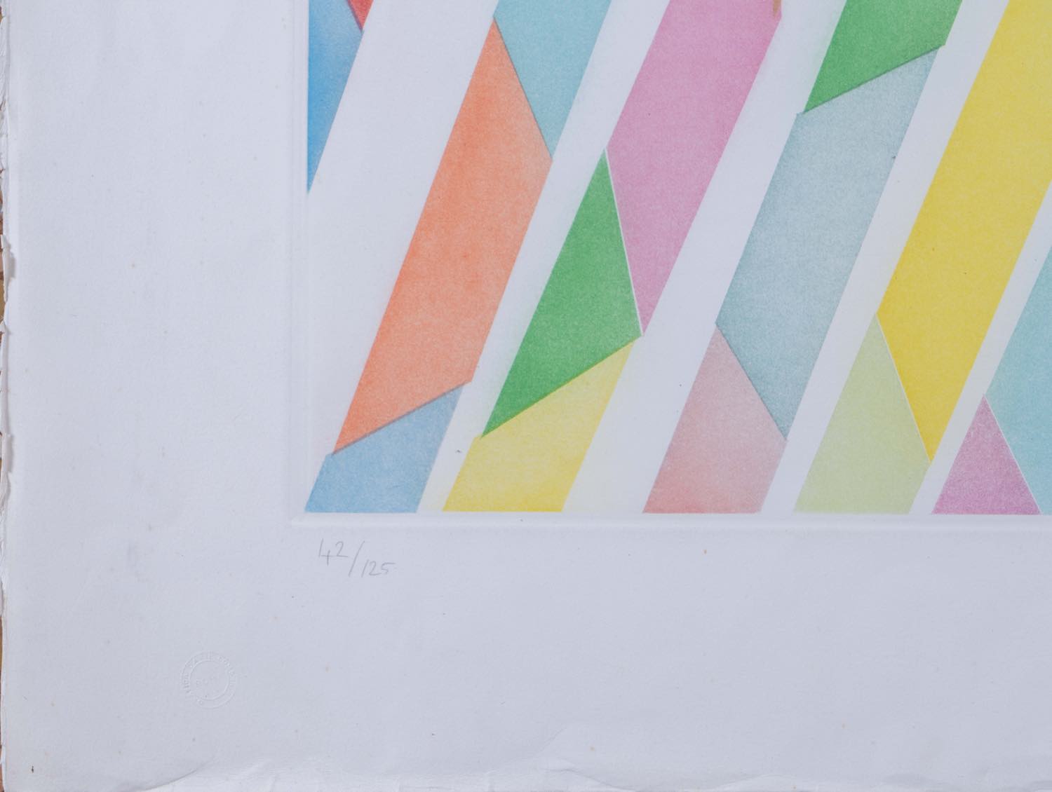 Acquatinta a colori su carta, firmata e datata in basso a destra Piero Dorazio 1991, numero di tiratura in basso a sinistra 42/125, reca timbro a secco Grafica d’Arte Lombardi - Roma, Foglio H cm 80x120.5 - Lastra H cm 59.5x99