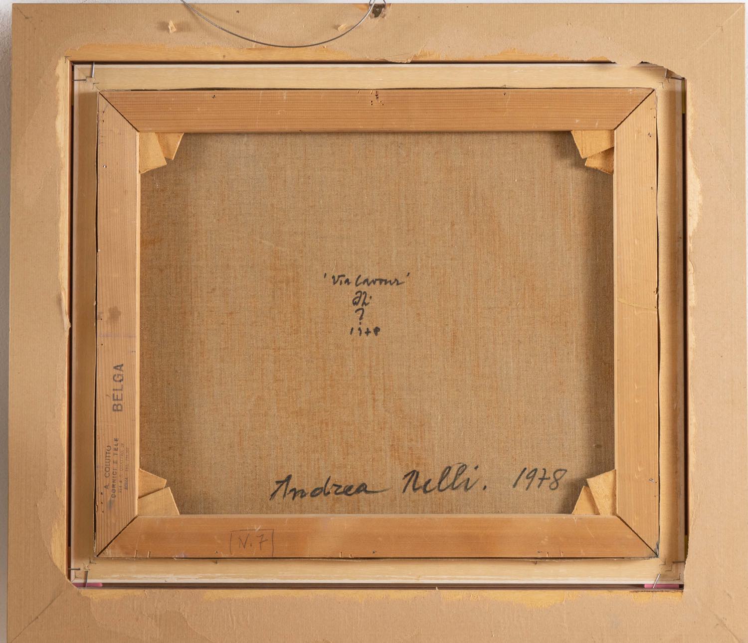 Olio su tela, reca al retro firma dell’artista e data “Andrea Nelli 1978” e iscrizione con titolo, H cm 41.5x51 – con cornice H cm 69x79