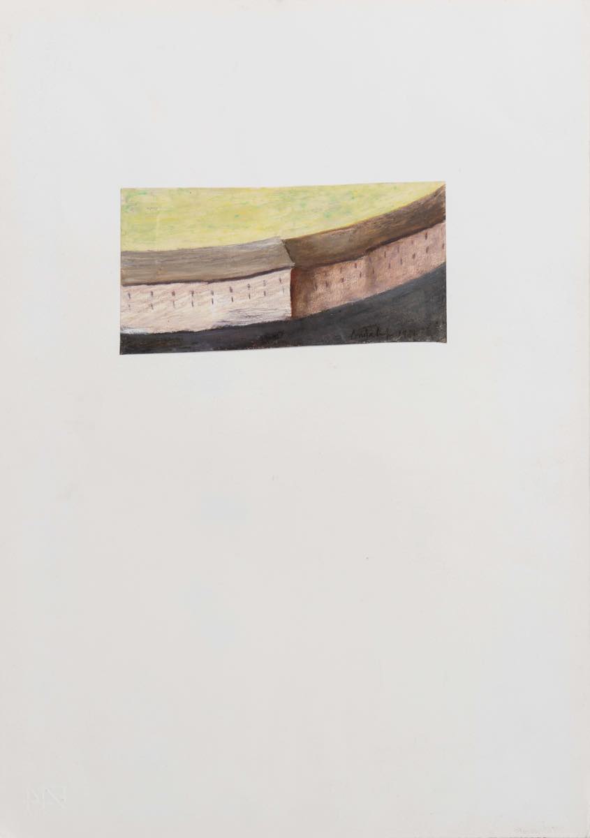 Olio su carta applicata a cartoncino, firmato e datato in basso a destra “Cantalupo 1981”, H cm 10x19 – Foglio H cm 50x35.5