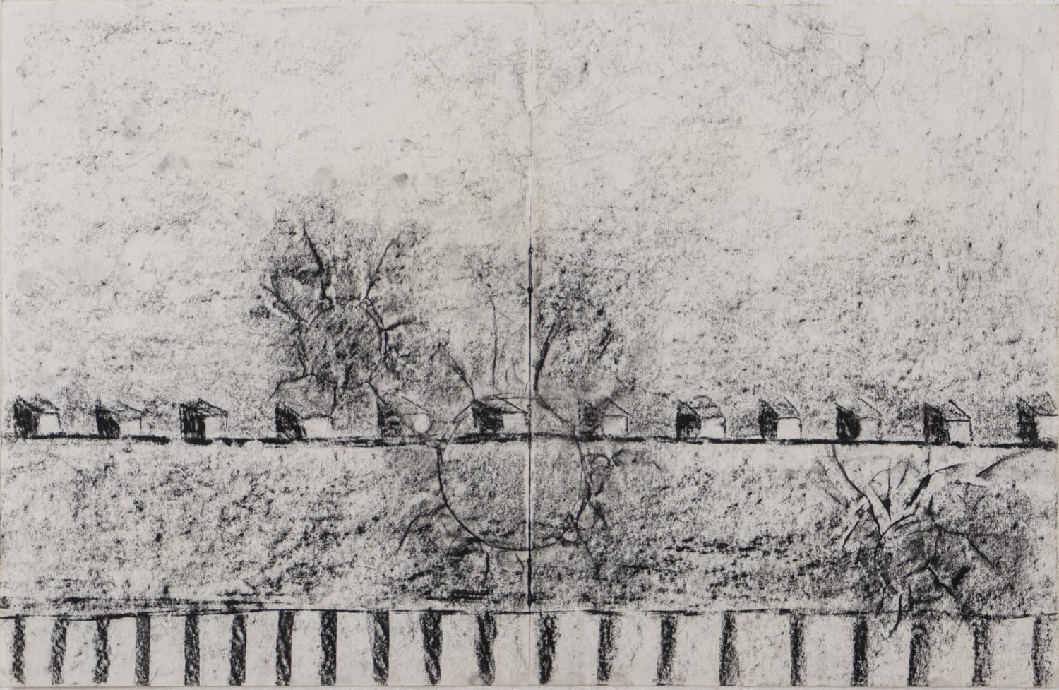 Carboncino su carta, firmato e datato al retro “Cantalupo 81”, H cm 28x43