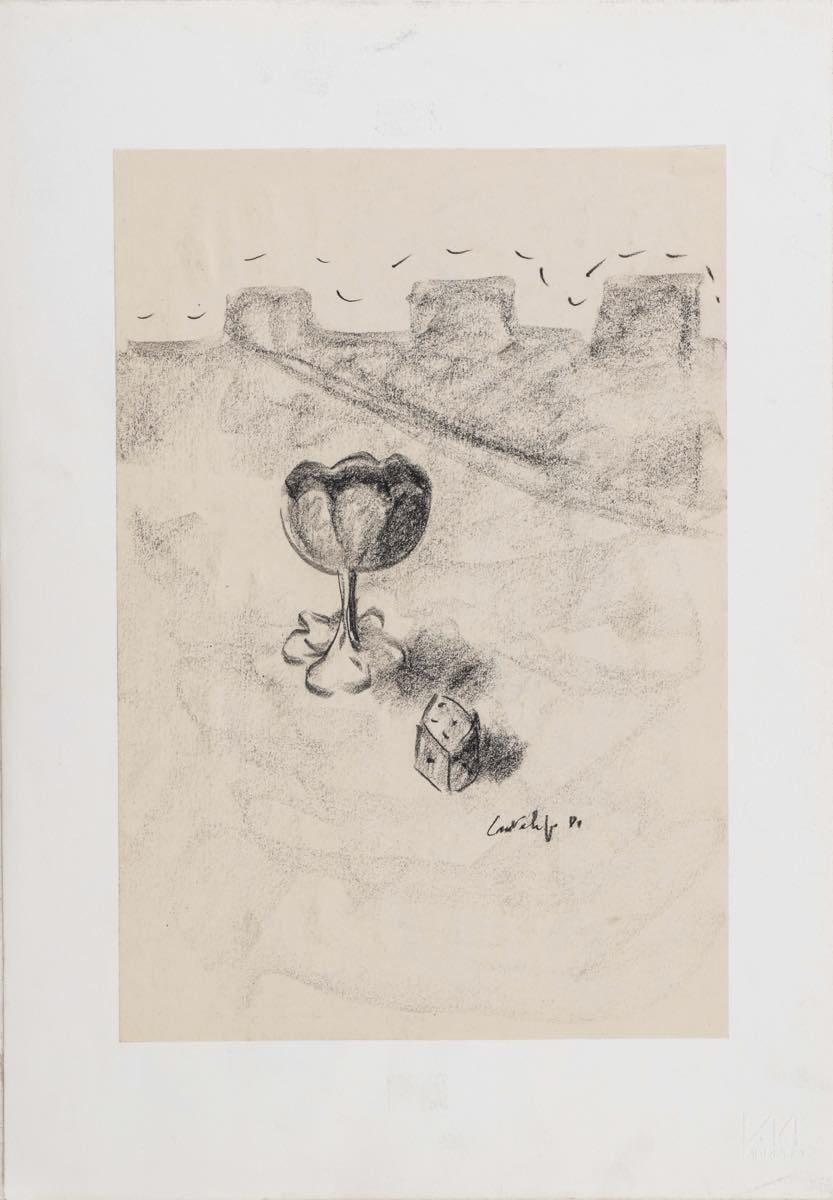 Carboncino su carta, firmato e datato in basso a destra “Cantalupo 81”, H cm 37x25.5 – Foglio H cm 50x35