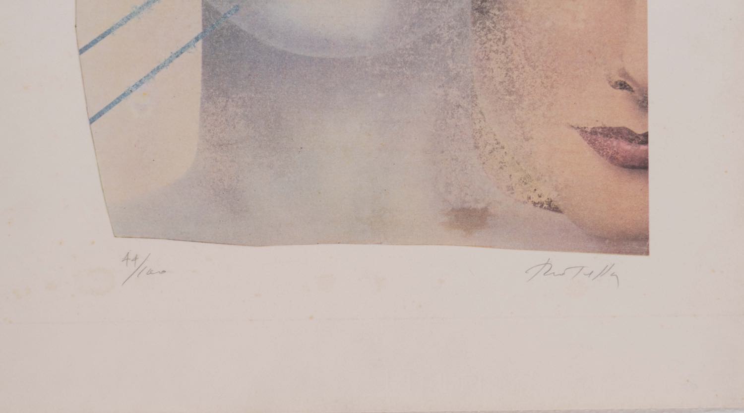 Litografia a colori su carta, firmata in basso a destra Rotella, numero di tiratura in basso a sinistra 44/100, H cm 70x50 (lievi usure)