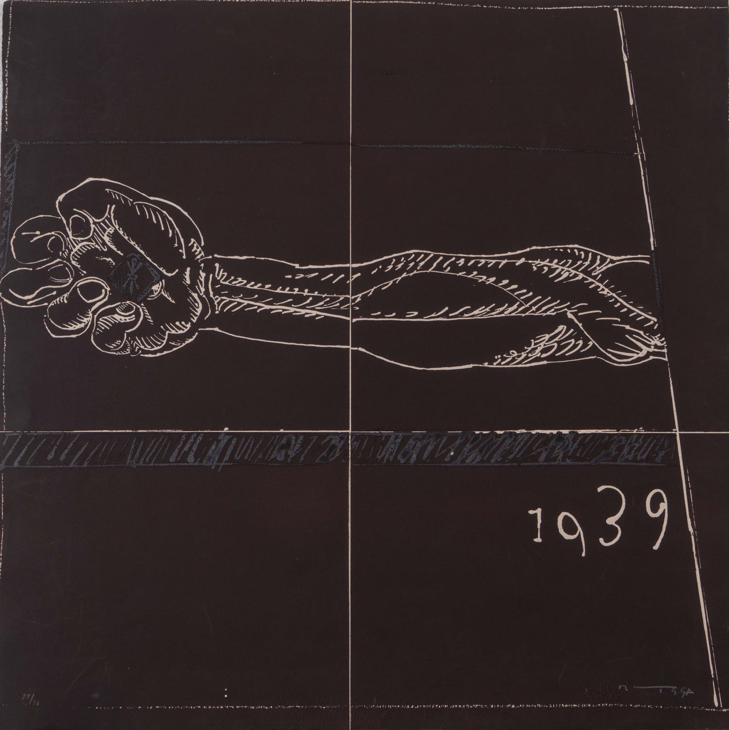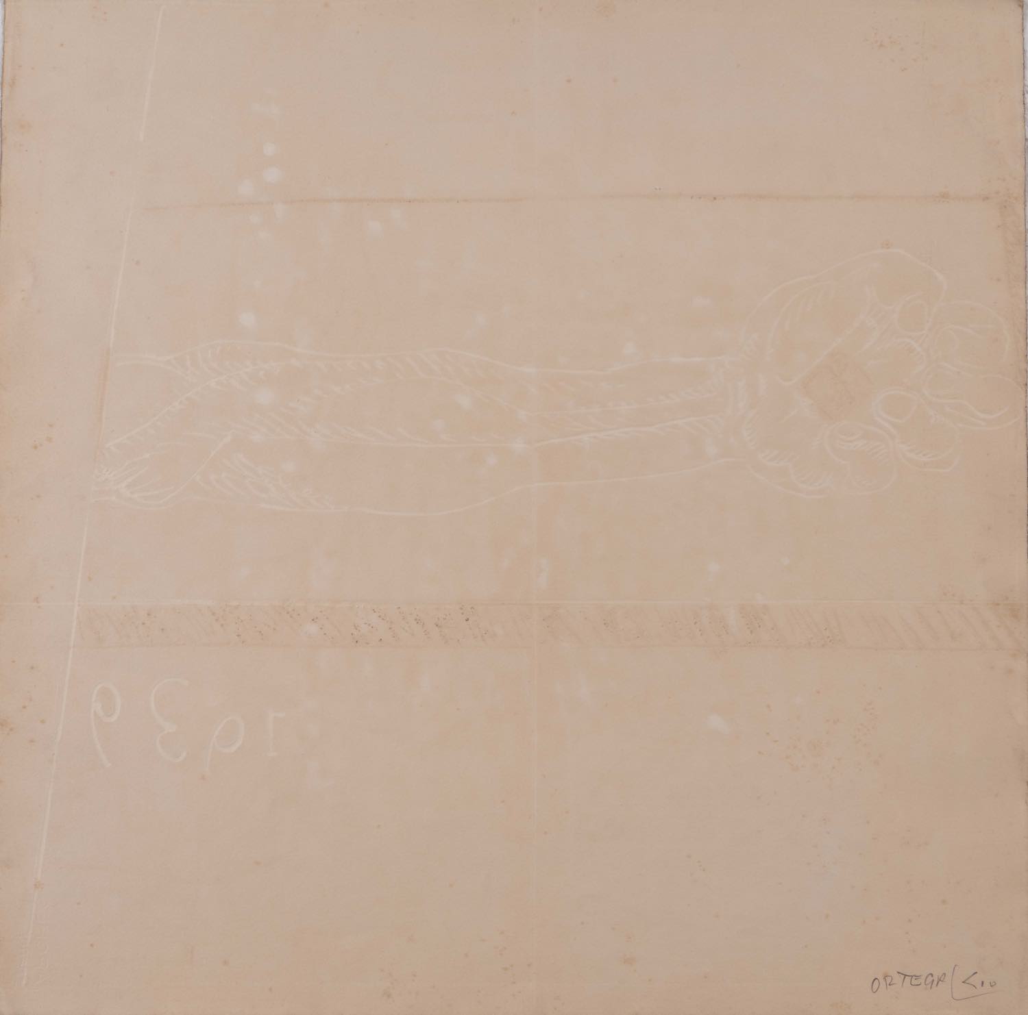 Serigrafia su carta, firmata in basso a destra “Ortega”, numero di tiratura in basso a sinistra 29/50, H cm 67x67 (lievi usure)