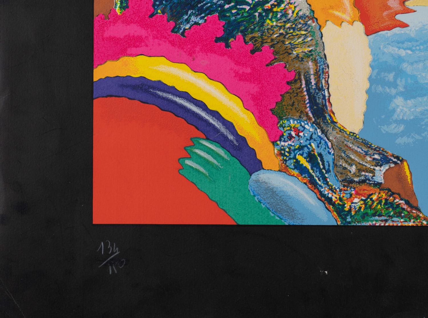 Serigrafia a colori su carta, firmata in basso a destra “Alinari”, numero di tiratura in basso a sinistra 134/150, reca al retro timbro “Ediart srl – Milano” con autore, titolo, tecnica, dimensioni, anno e tiratura, Lastra H cm 68x68 – Foglio H cm 88x88 (usure)