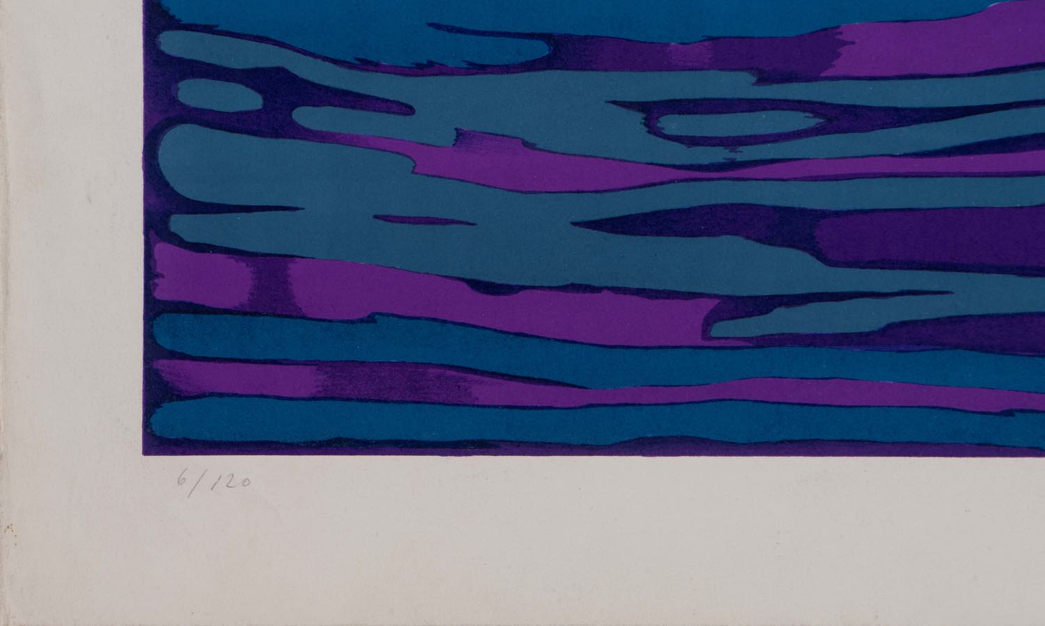 Litografia a colori su carta, firmata e datata in basso a destra Corpora 73, numero di tiratura in basso a sinistra 6/120, H cm 73x60