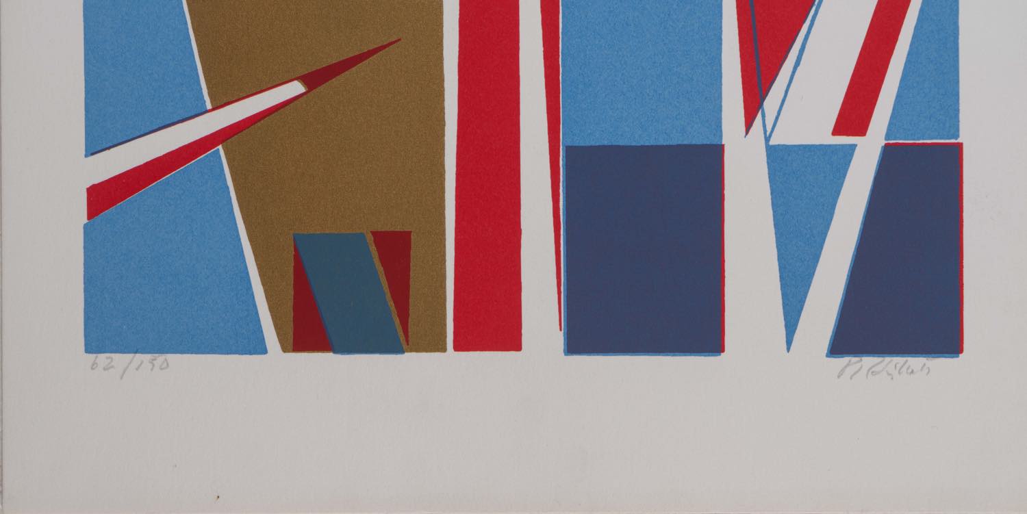 Litografia a colori su carta, firmata in basso a destra “Pizzinato”, numero di tiratura in basso a sinistra 62/150, Foglio H cm 49.5x35