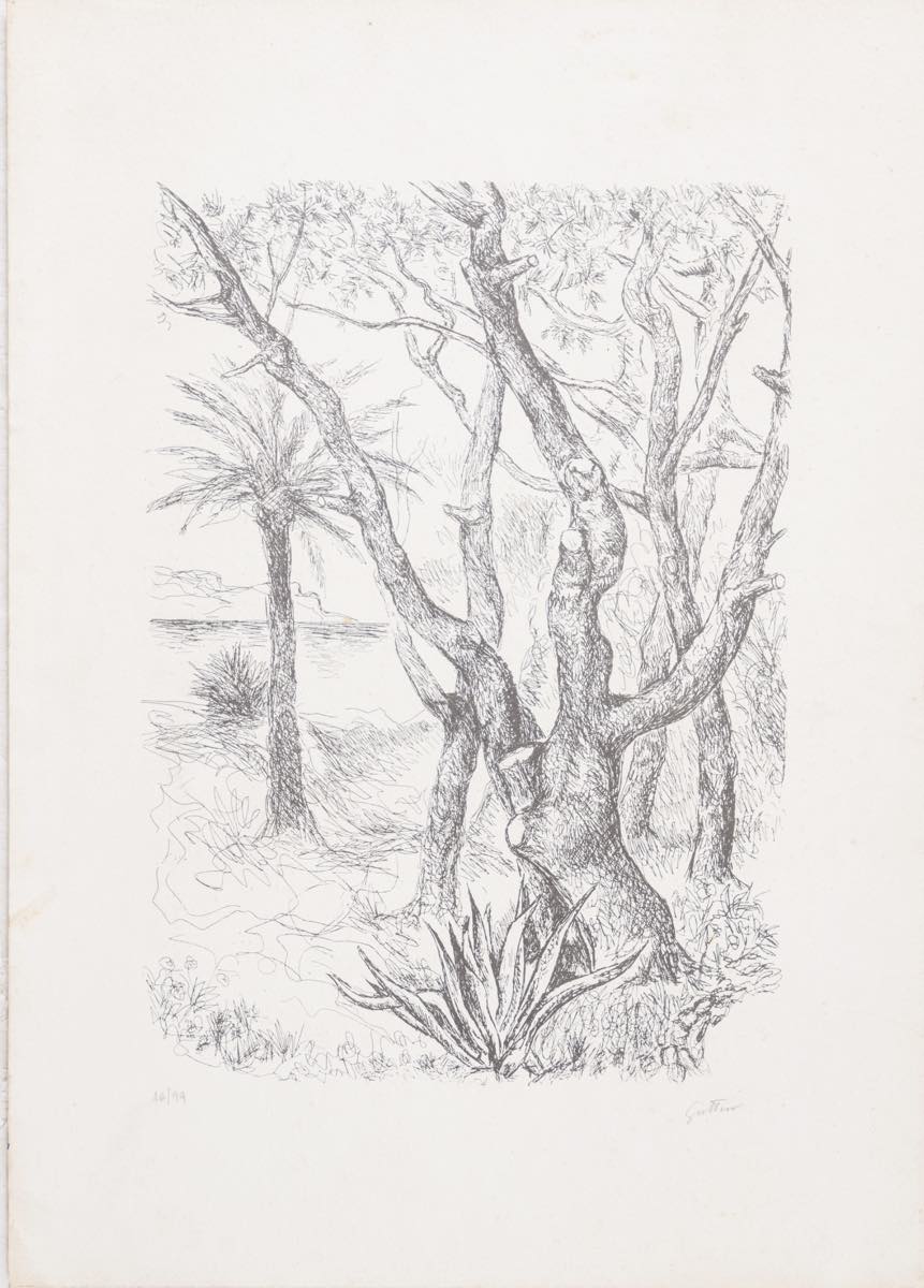 Renato Guttuso (Bagheria 1911 - Roma 1987), “Paesaggio marino e alberi”.
