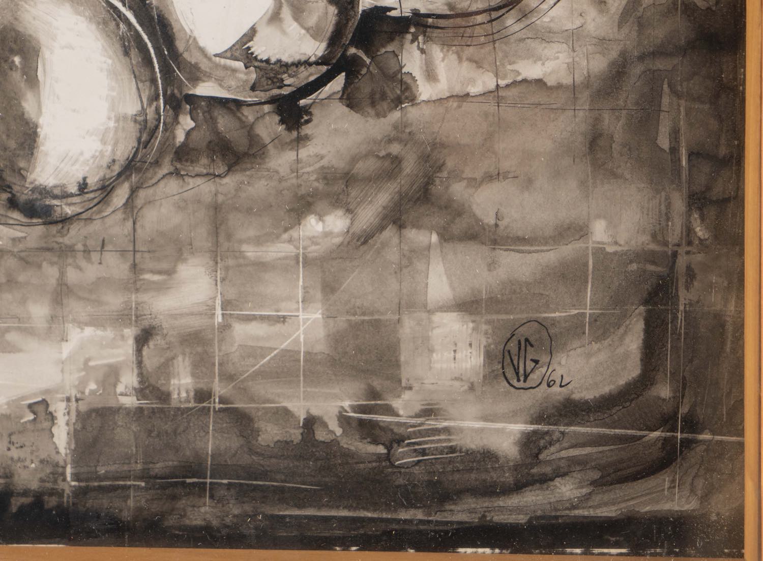 Olio e acquerello su cartoncino, siglato e datato in basso a destra “VG 62”, H cm 69x85.5