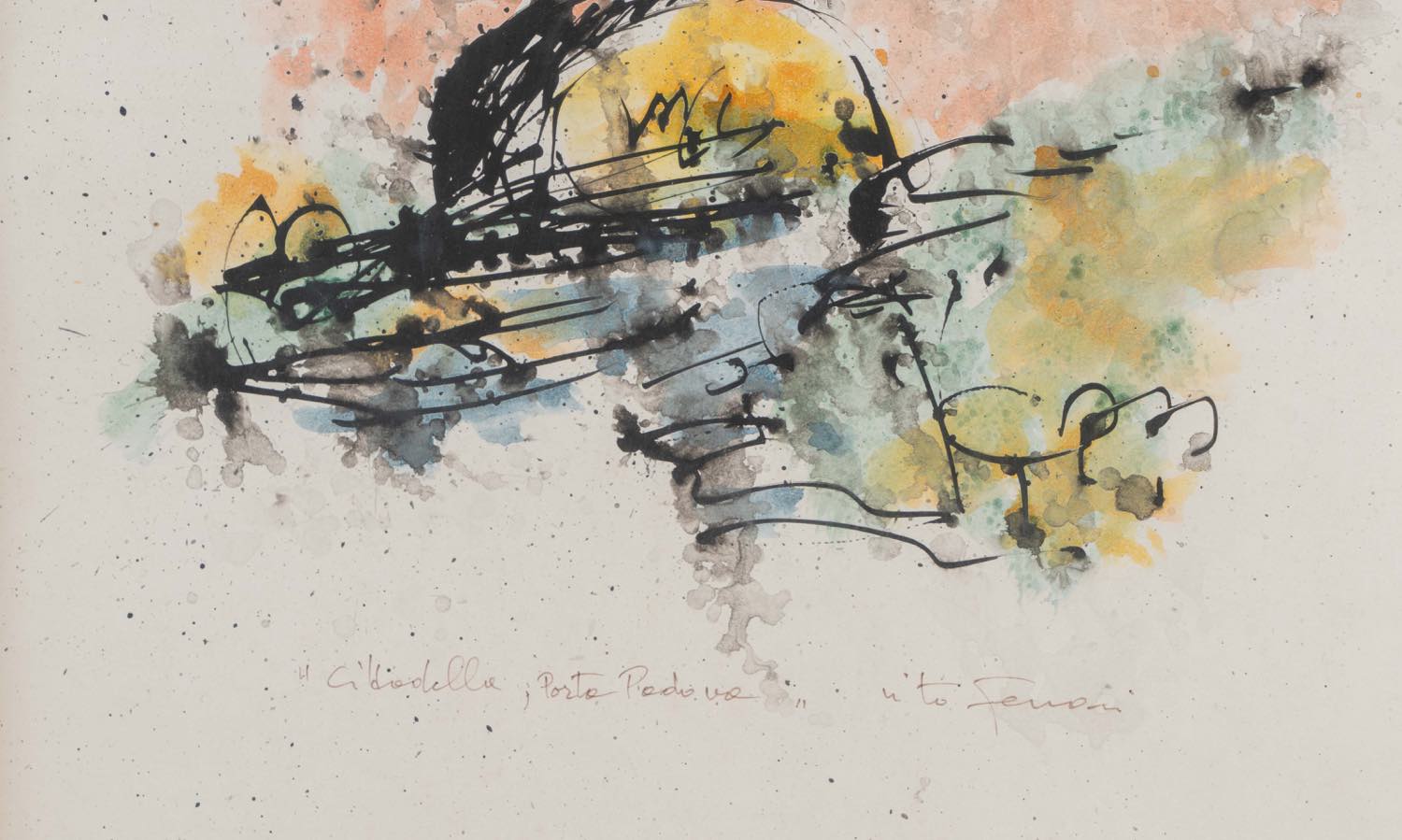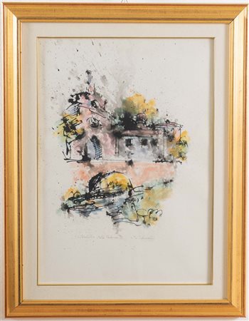Acquerello e china su carta, titolato e firmato in basso al centro, H cm 70x59 – con cornice H cm 88x68