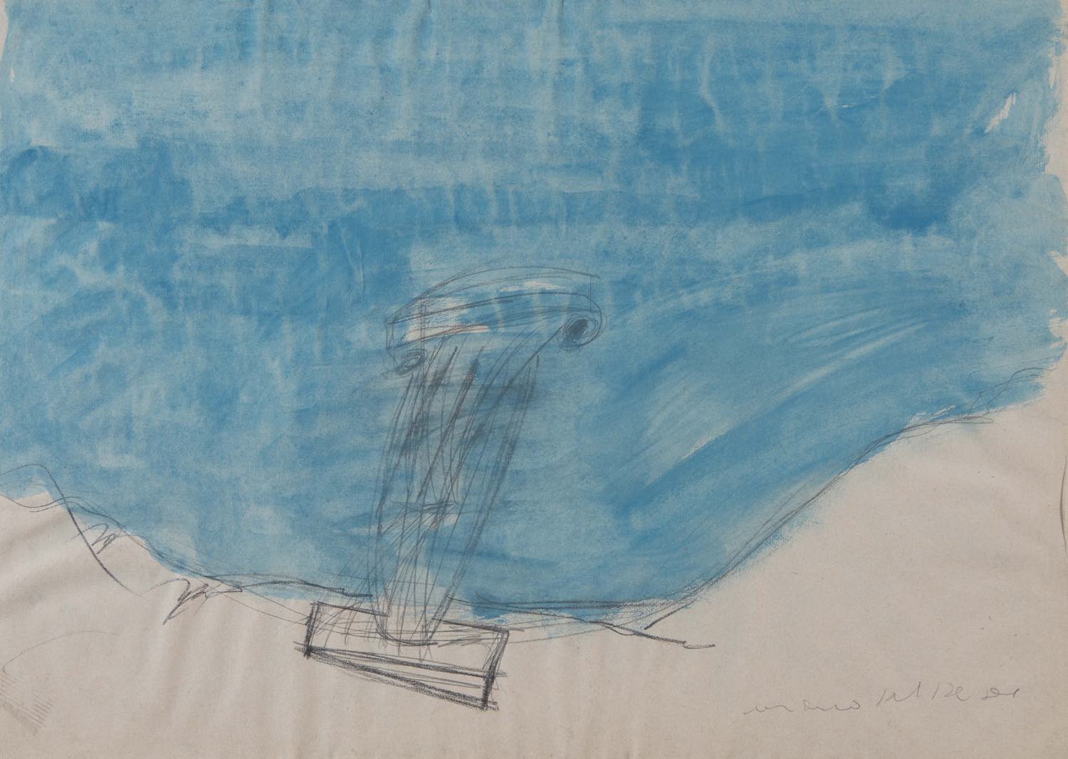 Matita e acquerello su carta, firmato e datato in basso a destra “Marco Del Re 81”, H cm 56x77.5