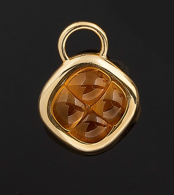 Ciondolo in oro giallo, firmato "Pomellato", modello "Sassi", recante quattro quarzi lemon taglio fantasia