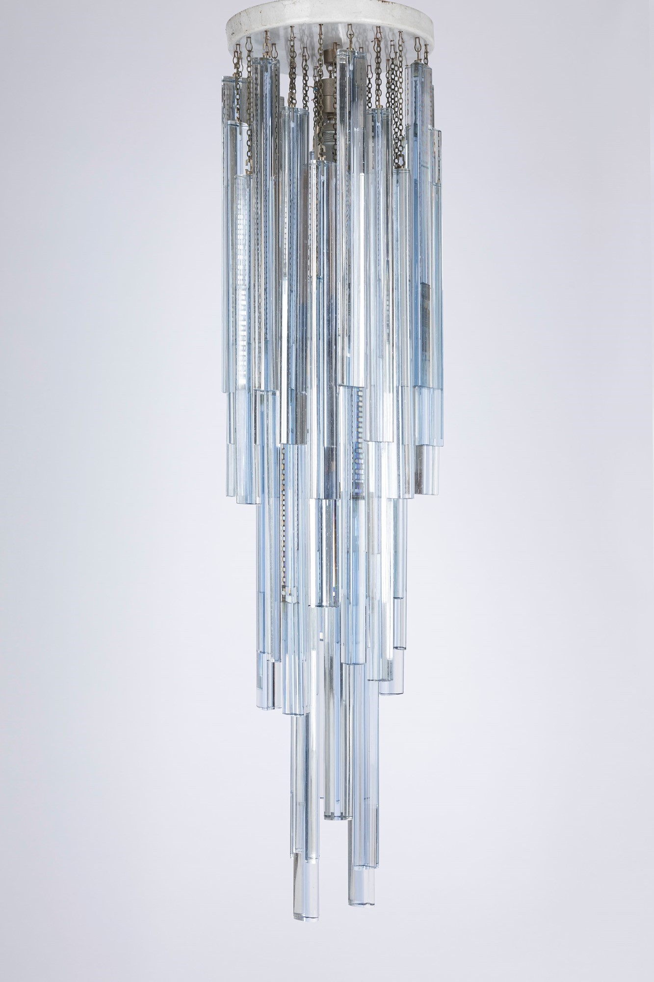 Venini - Lampadarioh 100 x diam 30 cm della serie Triedri in vetro soffiato.