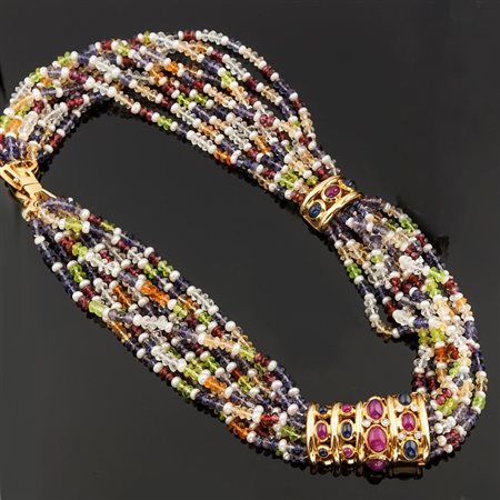 GIROCOLLO Girocollo lavorato a torchon con granati, quarzi, ametiste e...