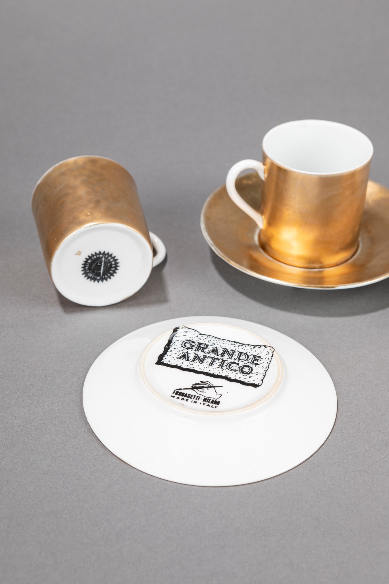 Piero Fornasetti - Grande Anticoh 11 x 7 cm Set composto da quattro tazzine e quattro piattini della serie Grande Antico in ceramica serigrafata.