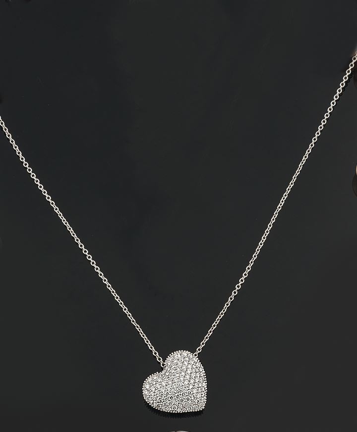 Catena con ciondolo in oro bianco a forma di cuore con pavè di diamanti taglio brillante per complessivi ct 1,0 ca