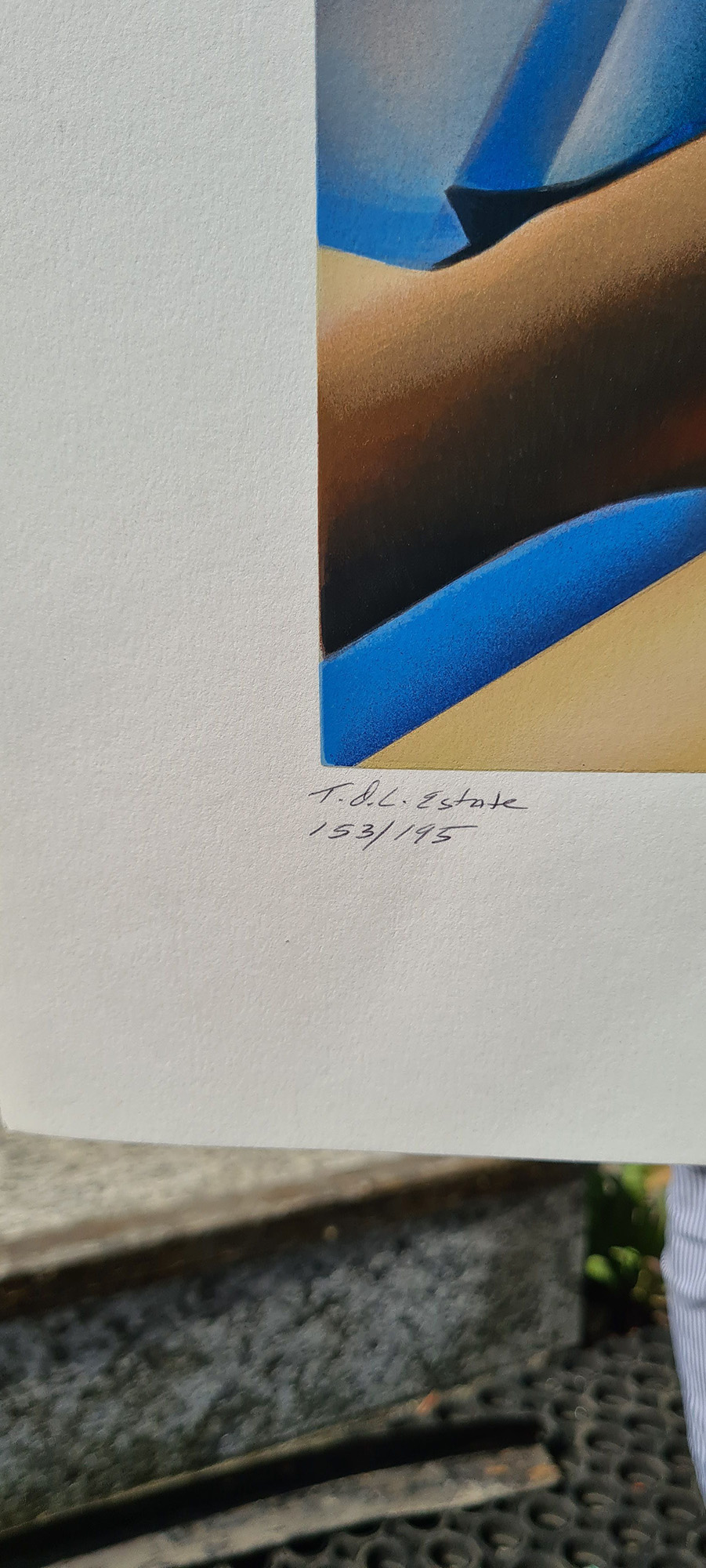 "Femme bleue a la guitare". Year: Printed between 1991 and 1993. Technique: Hand pulled and printed serigraph with water base ink on 100% acid free archival Museum Board. Limited edition serigraph (silk screen print). Ed. 153/195.