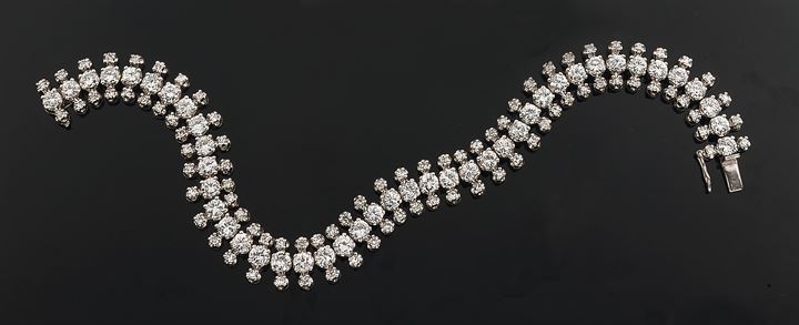 Bracciale in oro bianco con fila centrale di diamanti taglio brillante per complessivi ct 7,50,
