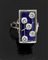 Anello in oro bianco, firmato "Cusi", sommità di forma rettangolare con smalto blu e cinque diamanti taglio brillante per complessivi ct 0,95 ca