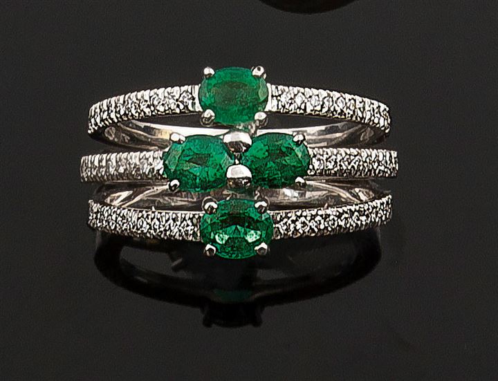 per complessivi ct 0,30 ca; al centro quattro smeraldi taglio ovale per complessivi ct 1,50 ca