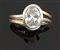 Anello in oro giallo e bianco, firmato "Olivero", al centro diamante solitario taglio ovale di ct 1,84 ca