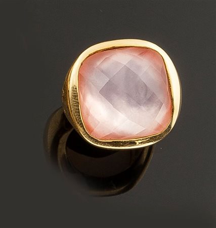 Anello in oro giallo, firmato "Pomellato", modello "Cipria" con al centro quarzo rosa sfaccettato