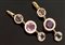 Coppia di orecchini pendenti in oro giallo, firmati "Bulgari" composti da quarzi fumè, ametiste e acquamarine taglio rotondo