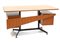 Scrivania a sei cassetti, telaio in metallo laccato nero, piano in laminato simil legno.