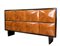 Credenza a otto sportelli impiallacciata a marquetterie in teak con cornice in legno ebanizzato.