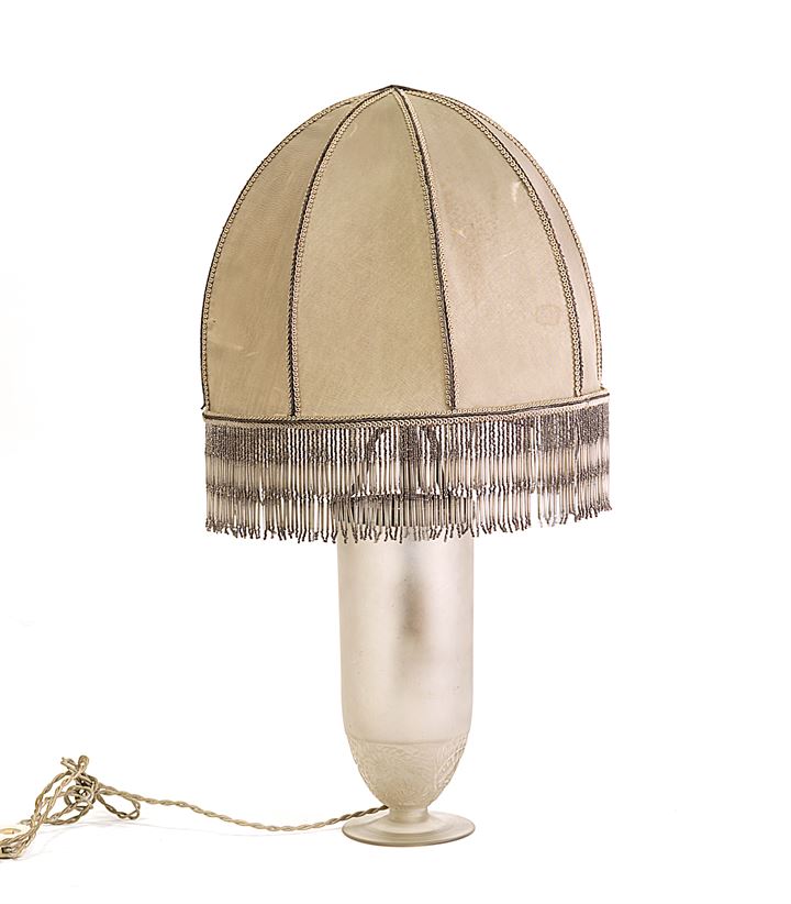 Lampada da tavolo in cristallo soffiato in stampo e sabbiato. Decoro a racemi.