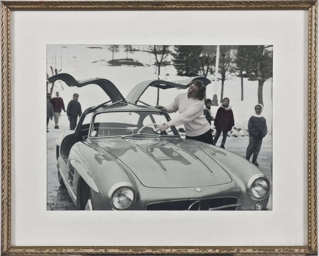 Foto di auto d'epoca del collezionista udinese Pelizzo, mancato alcuni anni fa, insieme a personaggi dell'epoca