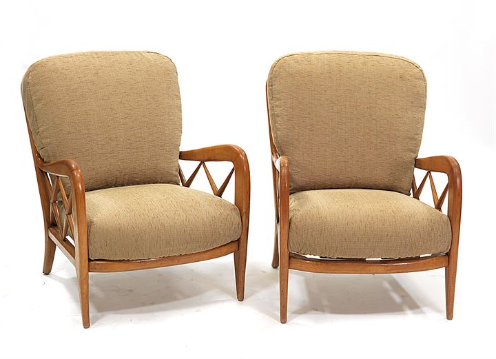 POLTRONE Coppia di poltroncine con telaio in legno di faggio. Rivestimento in...