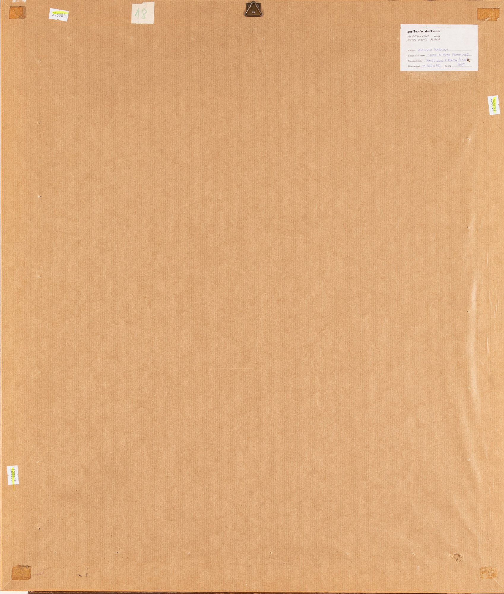 Etichetta al retro della Galleria dell'Oca, Roma
