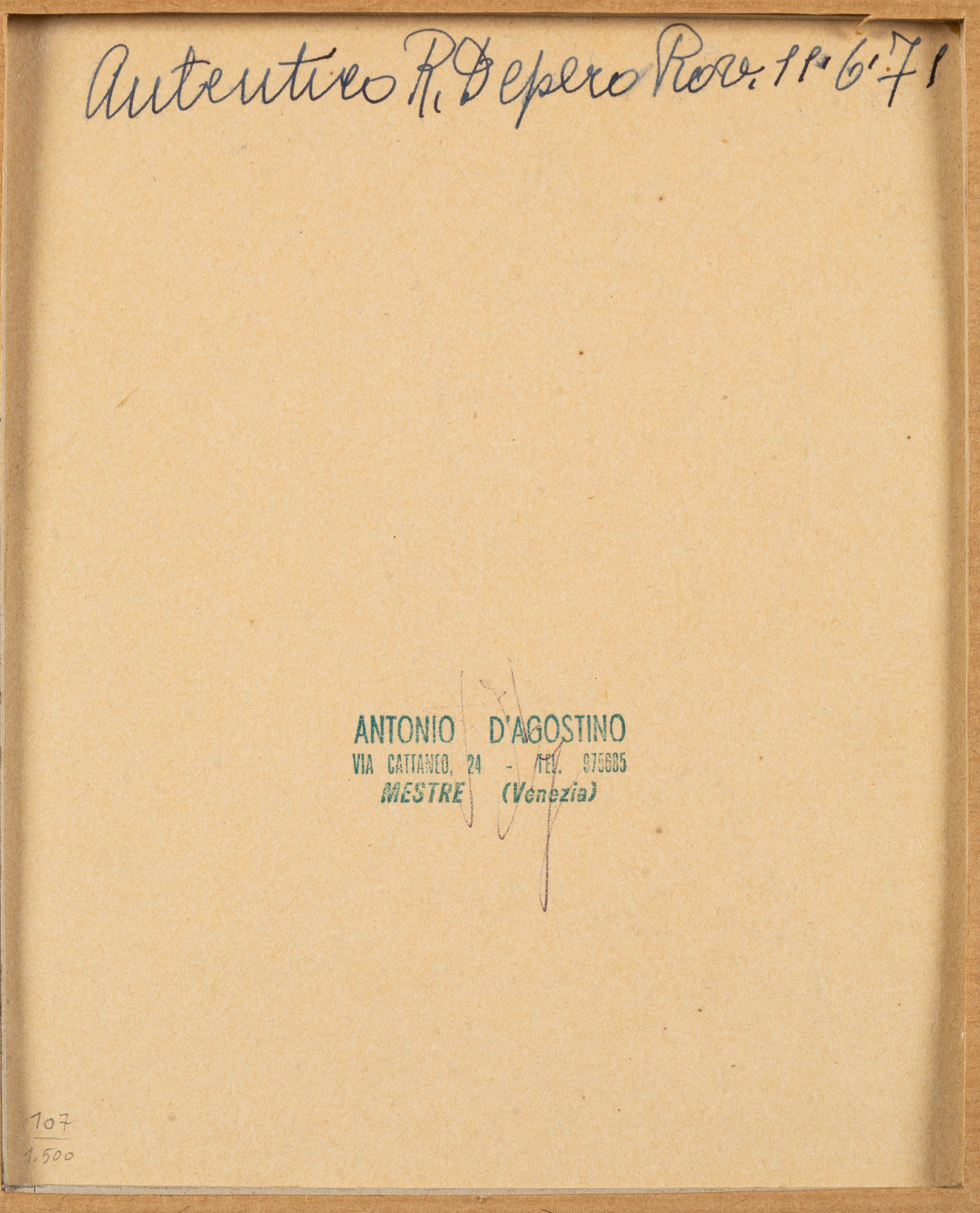 Opera in corso di archiviazione presso l'Archivio Unico per il Catalogo Generale Ragionato delle opere di Fortunato Depero, Rovereto
