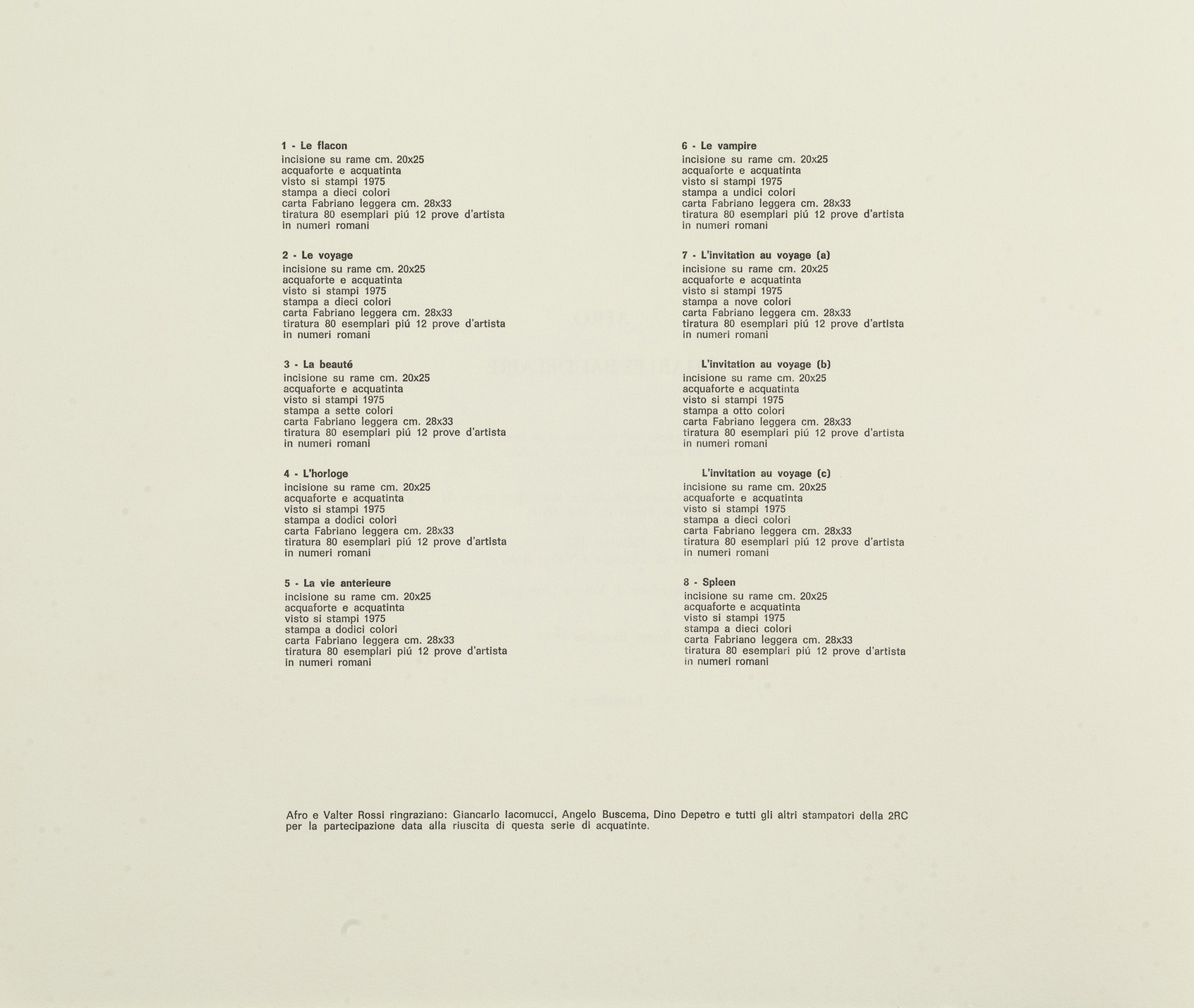 Ciascuna incisione è numerata IX/XII in basso a sinistra e firmata in basso a destra