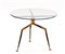 Tavolino con base in tubolare d'ottone conificato, piano in cristallo.