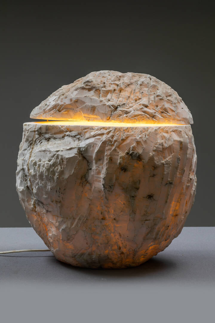 Lampada a forma di roccia in marmo scalpellato. Anni '60