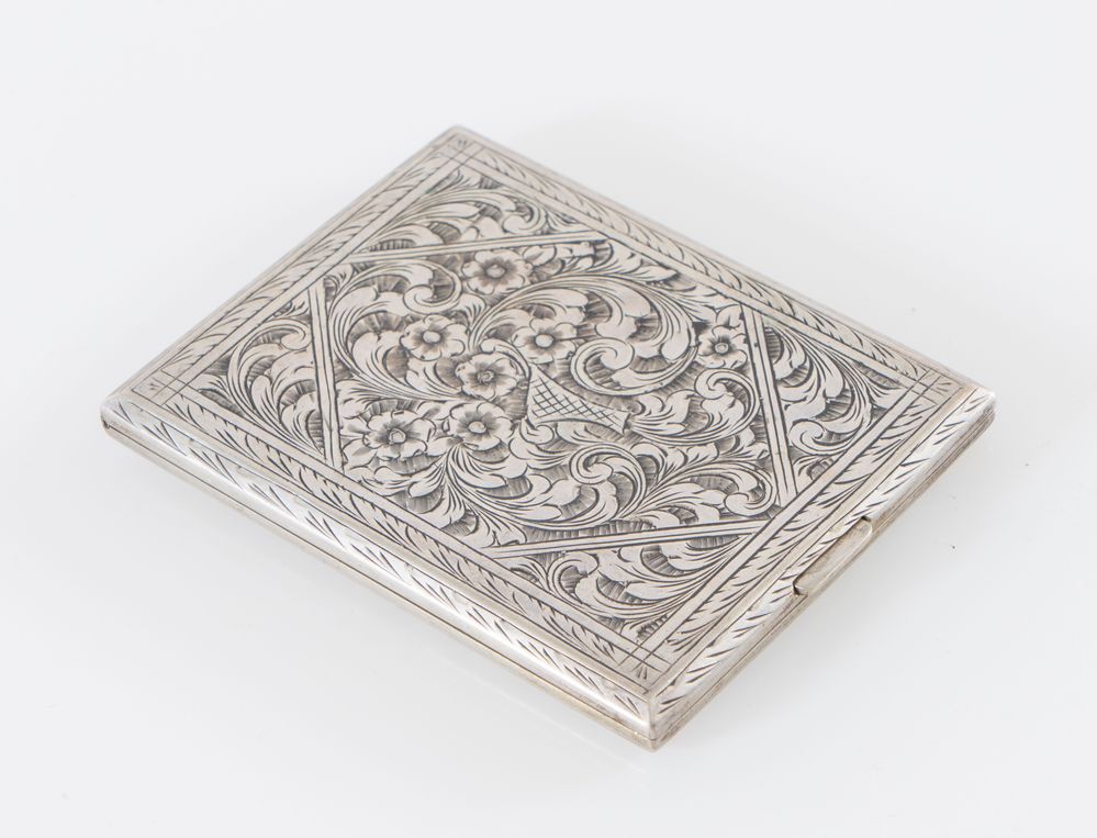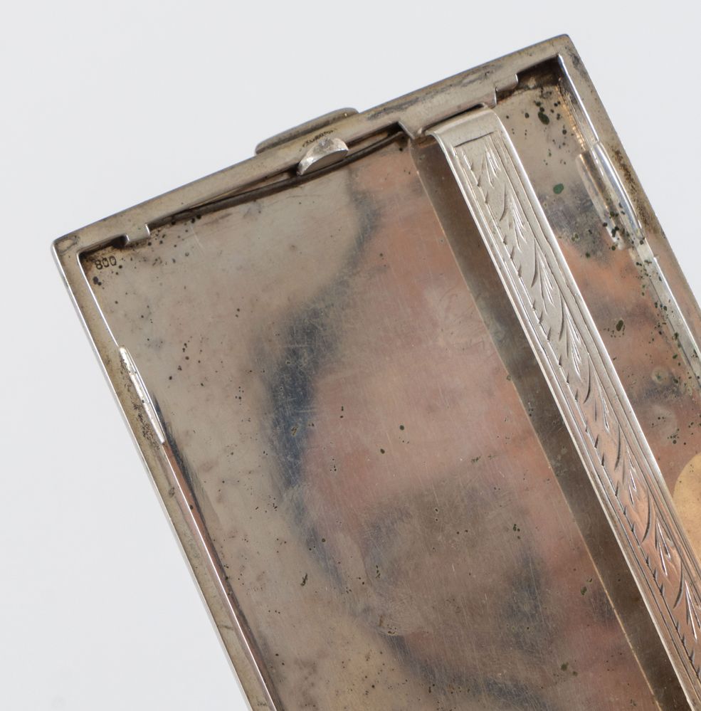 Portasigarette in argento 800. All'interno reca punzone 800. Cm 10x7,8x1. Peso: 130 gr.