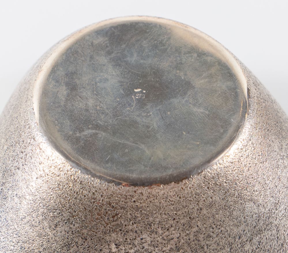 Primo ventennio del XX secolo. Ciotola in argento 800. Sul bordo superiore e sotto la base reca punzoni: 800 e losanga locativa non identificata. Cm 7,5x13,5x12,5. Peso: 163 gr.