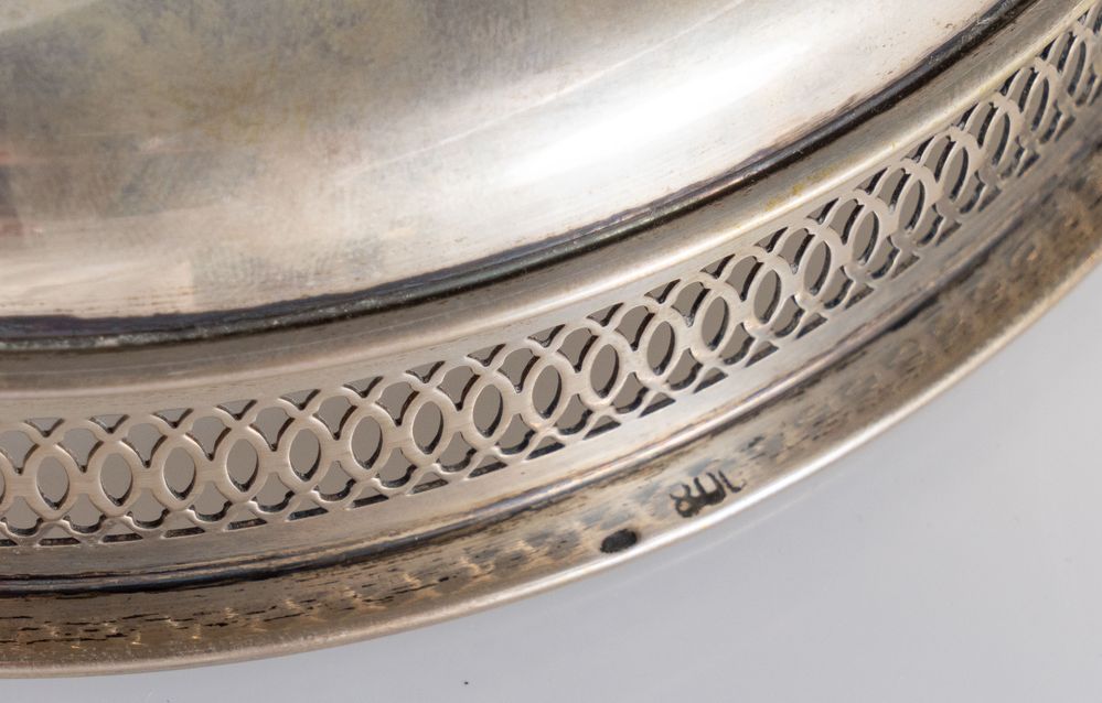 Italia, XX secolo. Alzata in argento 800 con bordo traforato a ringhiera,...