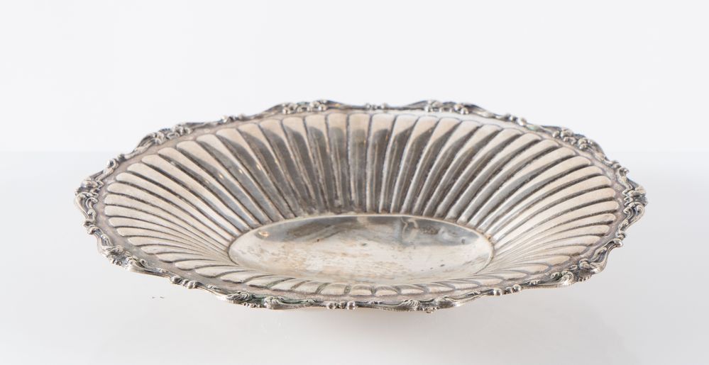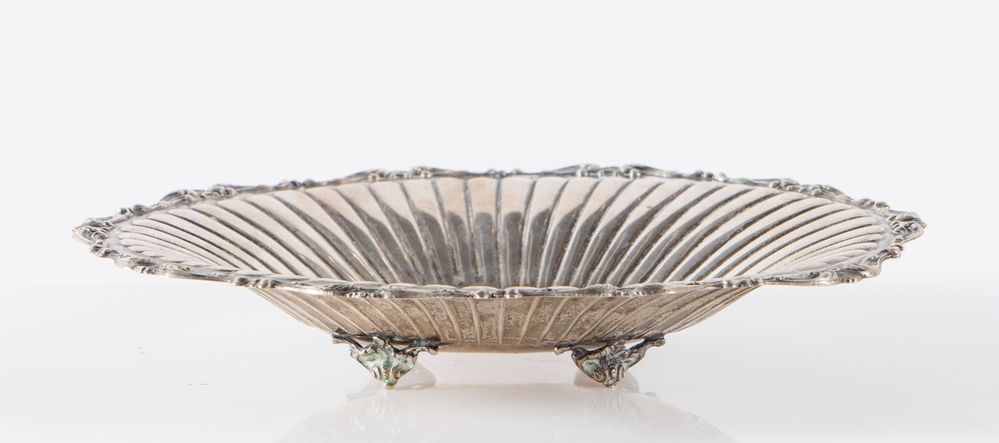 Italia, prima metà del XX secolo. Alzata in argento 800. Sul bordo superiore reca punzoni: 800 e losanga locativa non identificata. Cm 4,5x24x19,5. Peso: 187 gr.
