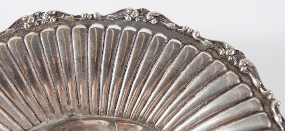 Italia, prima metà del XX secolo. Alzata in argento 800. Sul bordo superiore...
