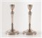 RINO GREGGIO, Padova, dal 1968. Coppia di candelabri in argento 800. Sul bordo inferiore reca punzoni: 800, firma dell'argentiere e losanga locativa 29PD. Cadauno di cm 20xdiametro 9,5. Peso: 335 gr.