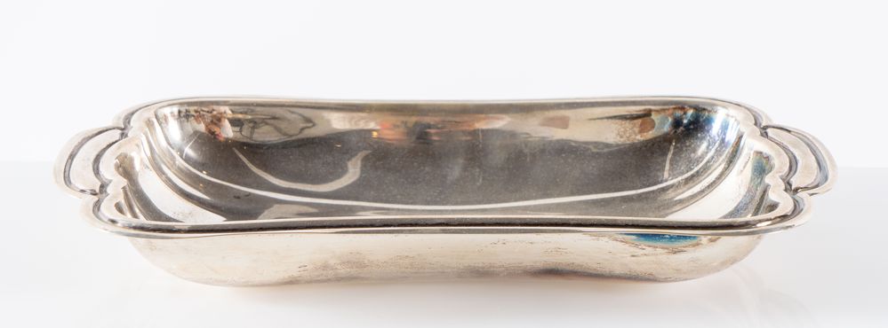 Italia, dal 1968. Vassoio in argento 800. Sulla base reca punzoni: 800 e losanga locativa non identificata. Cm 3,5x29x15. Peso: 422 gr.