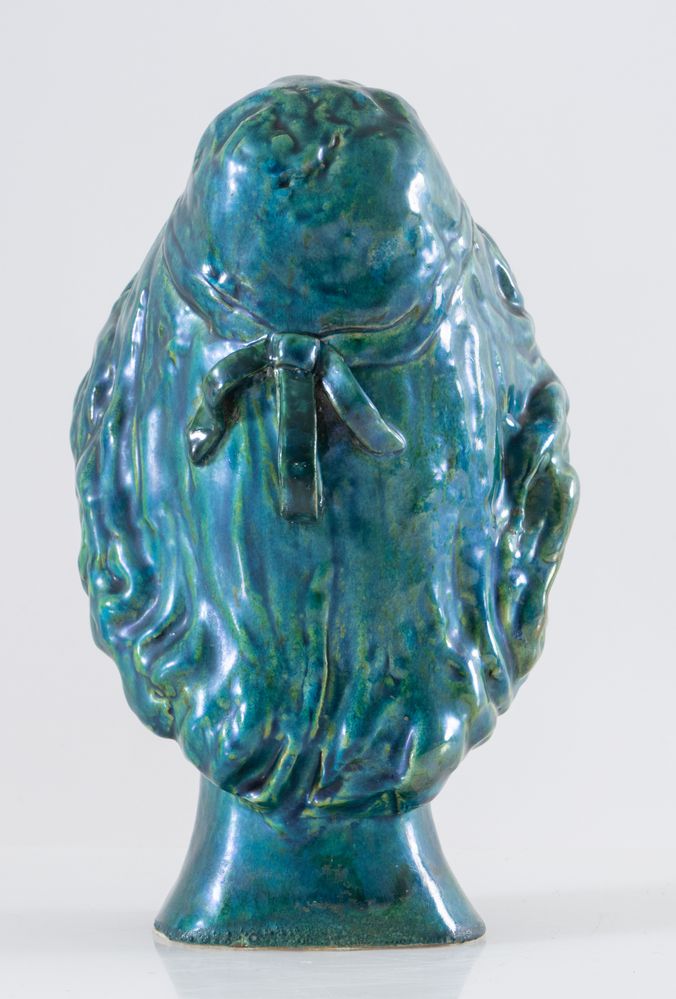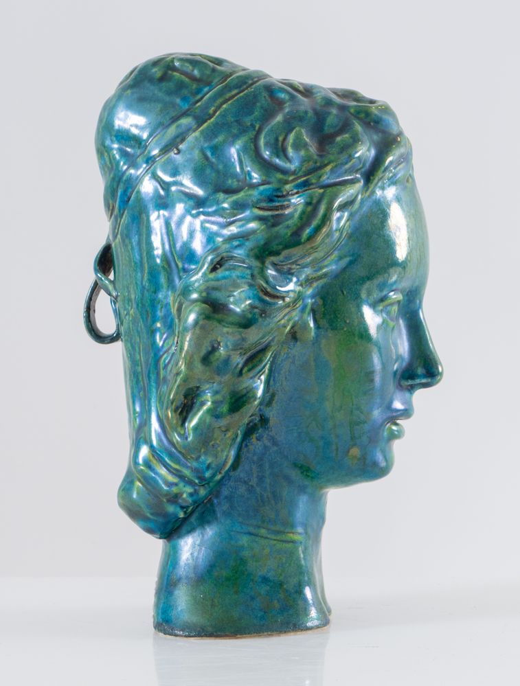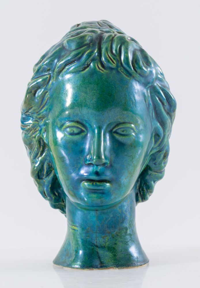 Lot 116 | TRAMONTI Testa di fanciulla in ceramica policroma sui toni del verde. Anni...