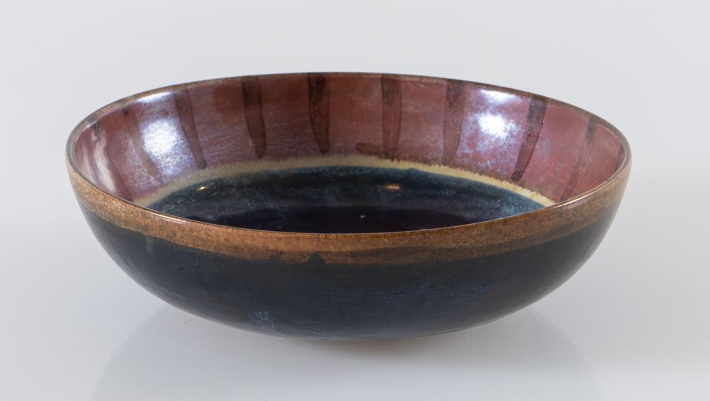 MATTEUCCI FAENZA Ciotola in ceramica policroma con interno a raggiera. Anni...