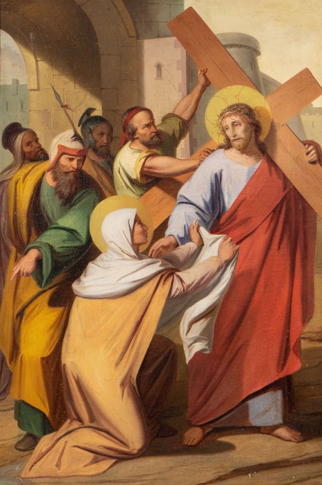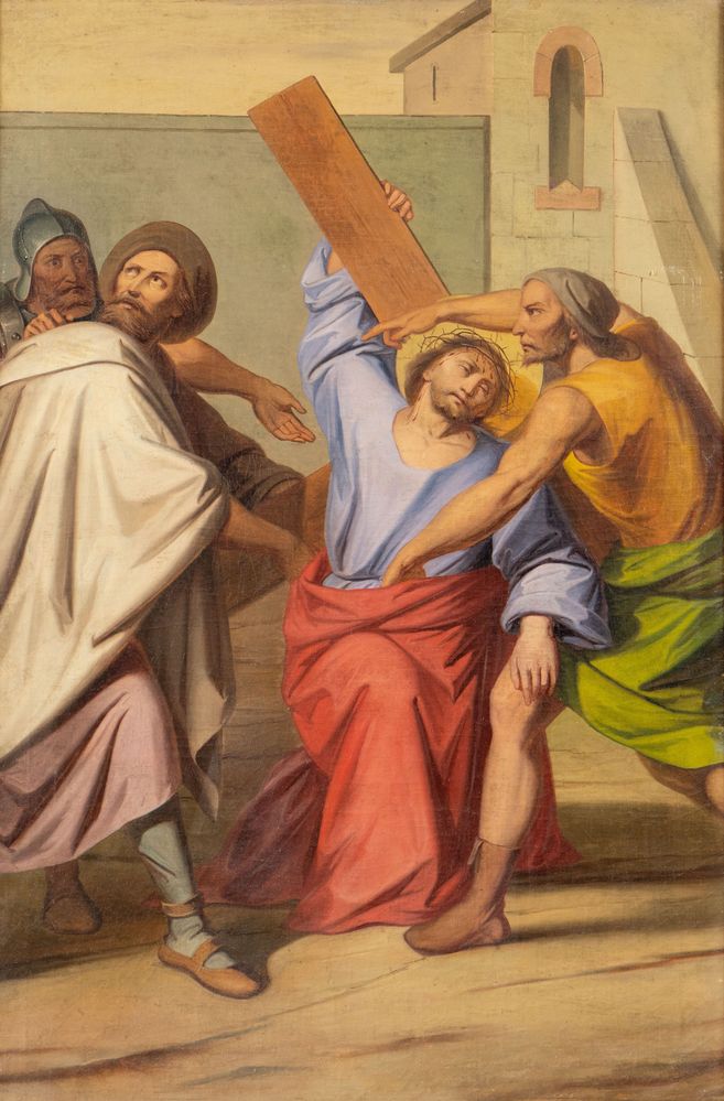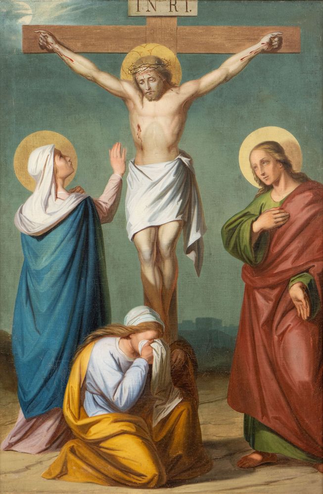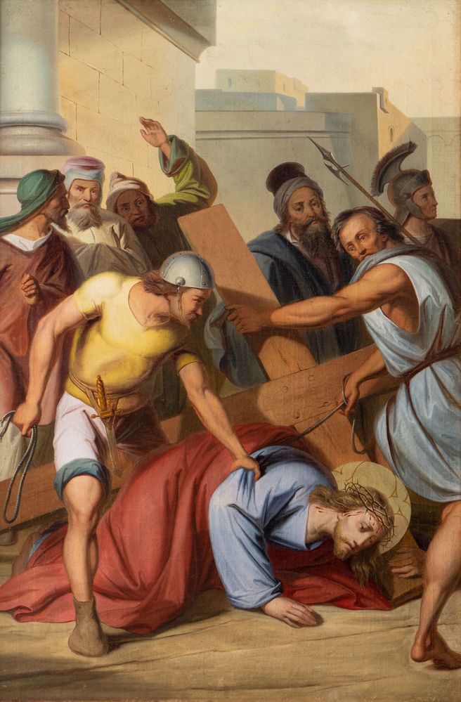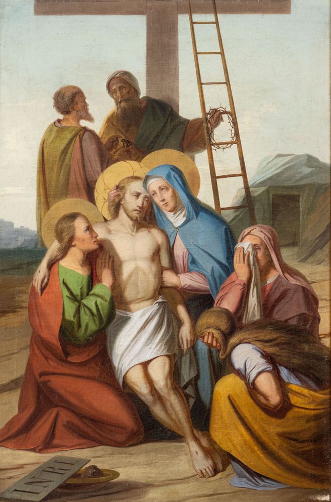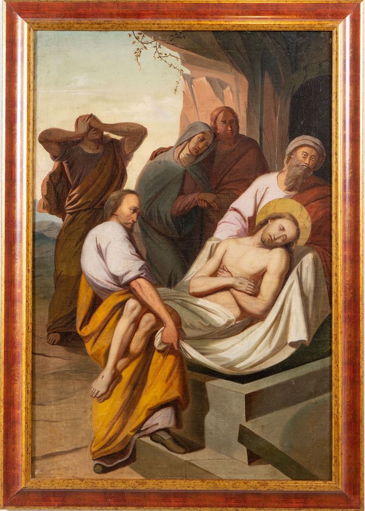 Maestro del XIX secolo. "Via Crucis". Lotto composto da quattordici oli su tela. Cm 97x65.