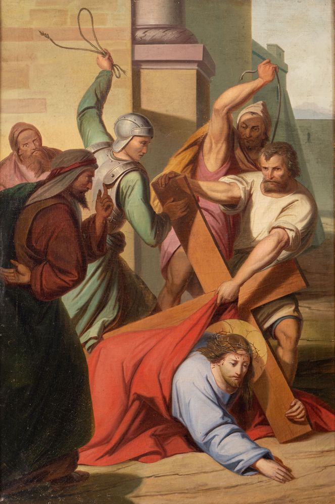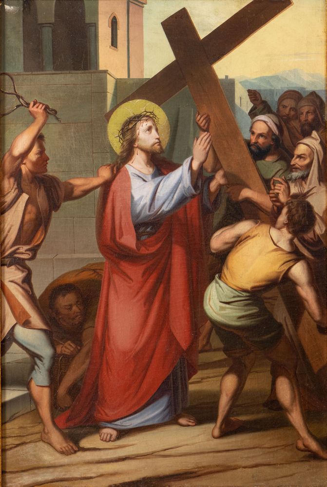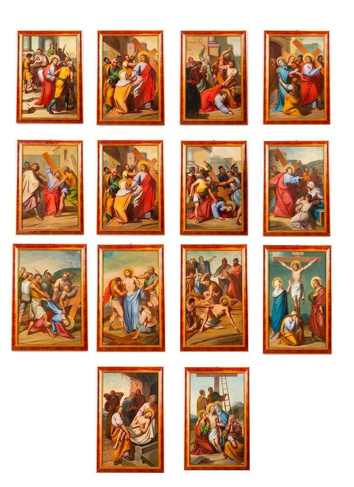 Maestro del XIX secolo. "Via Crucis". Lotto composto da quattordici oli su...