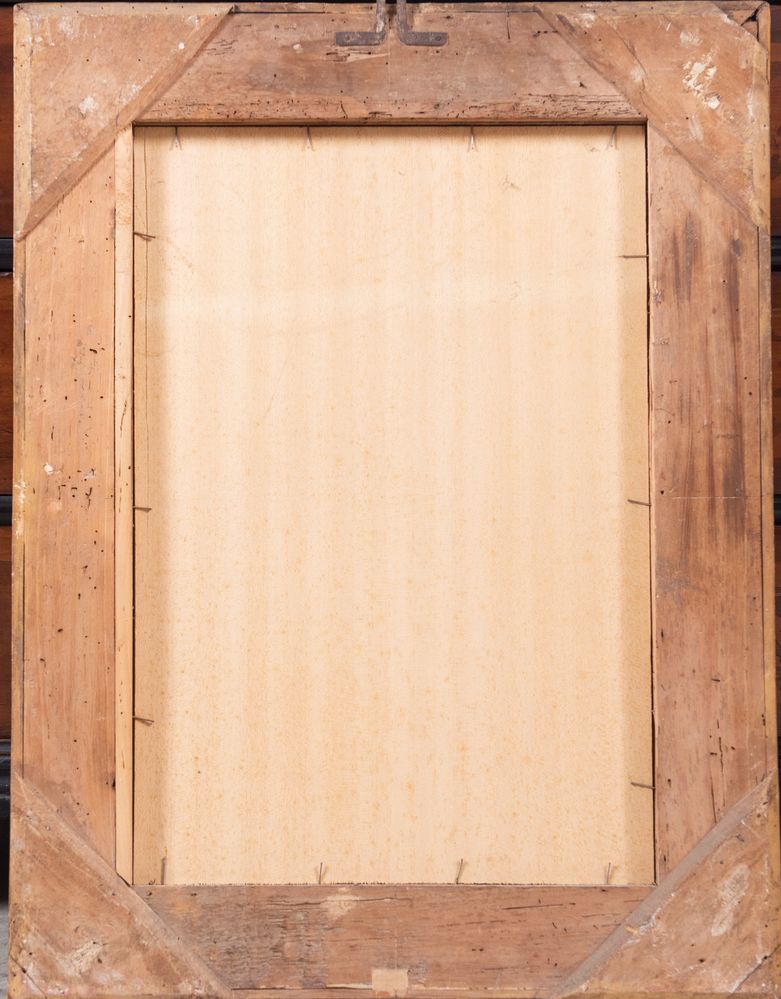 Specchiera intagliata e dorata, a cassetta, con motivi bulinati. Manifattura...